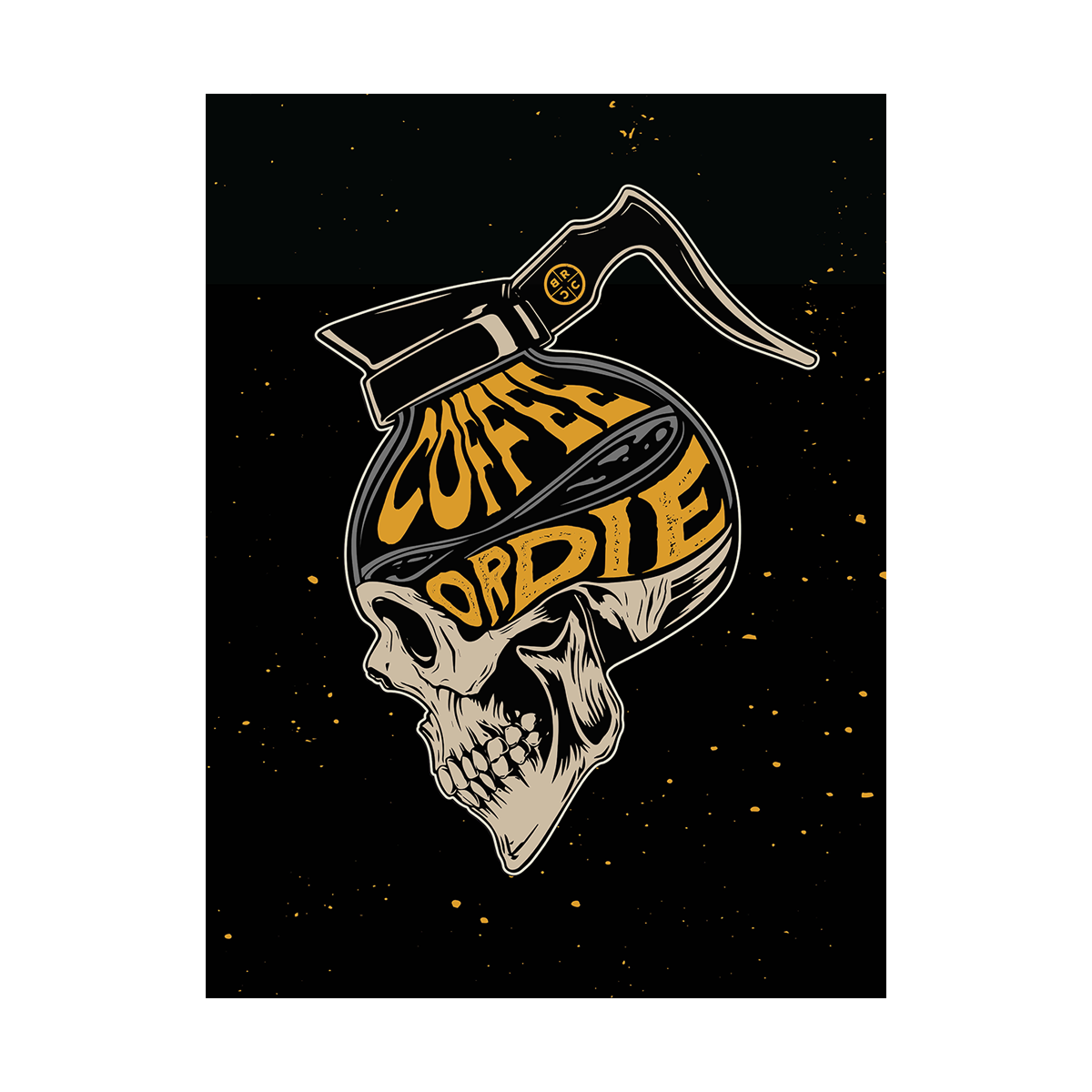 The Death Pot Poster is caffeine commitment in its purest form. A skull fused with a brimming coffee pot drives home the creed that every BRCC diehard knows by heart: Coffee or Die. Bold, dark, and undeniable, this print brings the intensity of your morning brew to any wall that needs a little more backbone.