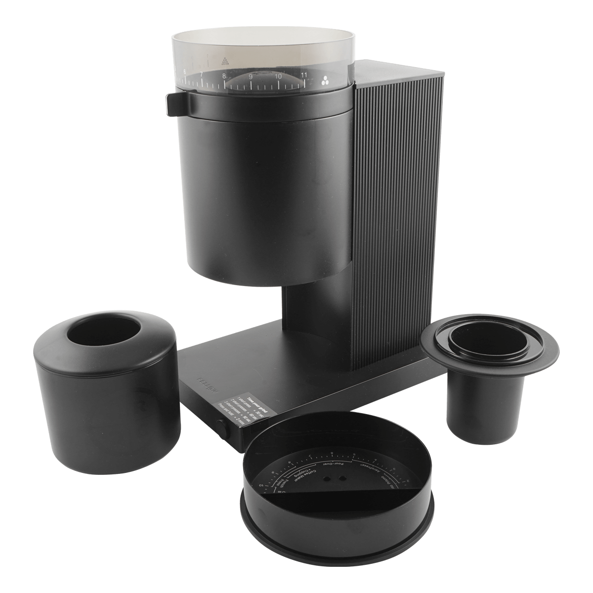 Opus also comes with a volumetric dosing lid to measure your beans, a spouted catch for a seamless transition from grind to brew, anti-static technology to minimize those pesky coffee remnants, and a grind guide to ensure you're never left in the dark.